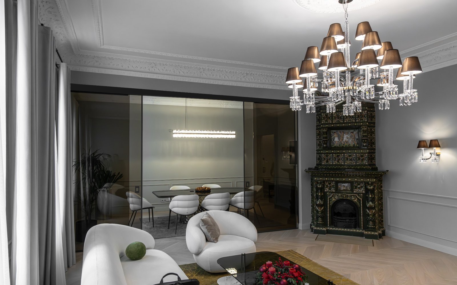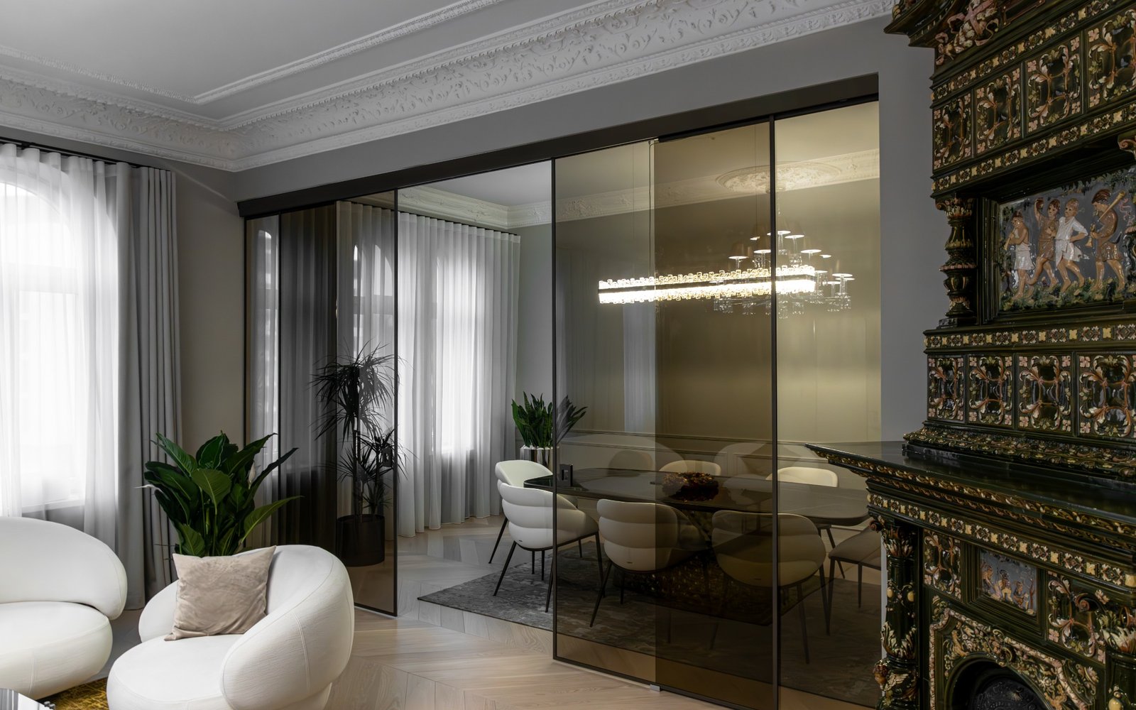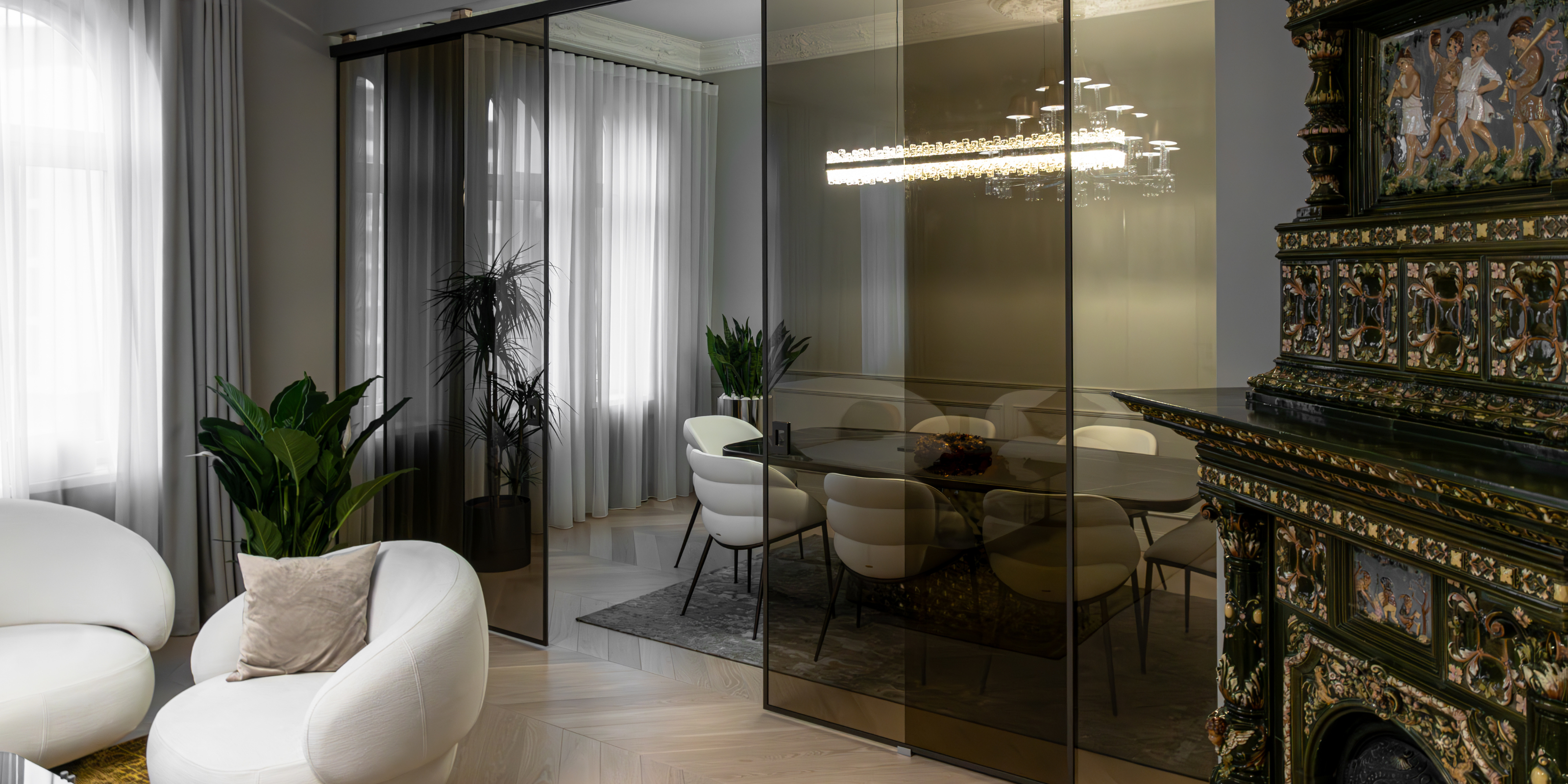 Furnivita had the privilege of being entrusted by Livland Group to design their new office in Riga's prestigious and serene silent centre. Furnivita also supplied furniture, lighting, and bespoke modern solutions tailored to the project. The 320 m² apartment was meticulously renovated and transformed into a sleek, contemporary office space.